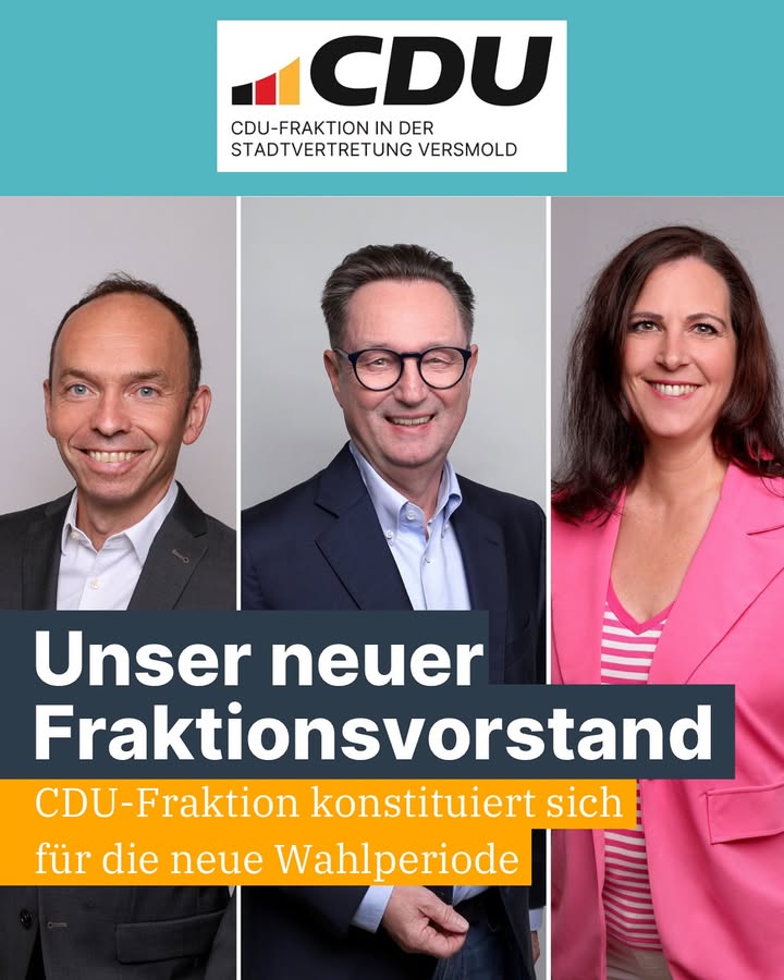 Am 01. November ist die neue Wahlperiode gestartet und morgen findet die konstituierende Sitzung der Stadtvertretung. Die CDU-Fraktion hat sich mit ihren 17 Mitgliedern dafür bereits aufgestellt und eine neuen Fraktionsvorstand einstimmig gewählt. Unsere Fraktion wird weiter von Ulrich Wesolowski als Fraktionsvorsitzendem geführt. Als 1. stellvertretender Vorsitzender unterstützt ihn weiterhin Torsten Gronau. Als neue 2. stellvertretende Vorsitzende wurde Sabine Bredow gewählt. Außerdem haben wir in unserer ersten Sitzung unsere Mitglieder für die verschiedenen Gremien bei der Stadt benannt, die wir Euch auch in Kürze vorstellen. Ein starkes Team für unser Versmold! 💪#versmold #sogehtversmold #cdu #fraktion #konstituierendesitzung #stadtvertretung @sabinebredow